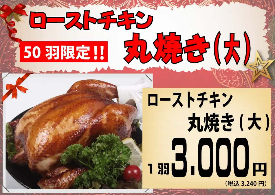 2025.11.05:クリスマス期間の焼き鳥の販売に関するお知らせ。 12月24日、25日はクリスマスの為、炭火焼き鳥の販売はお休みさせて頂きます。