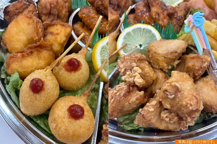 ★からあげ 200g ★山賊スティック 150g ★チーズドッグ 3本 ★ジューシーナゲット 3ケ ★テバ元揚 5本 ★ポテト 100g ★チキンチーズ大葉巻き(ハーフ) 6ケ ★春巻 ピザ味 2本 ★春巻 カレー味 2本