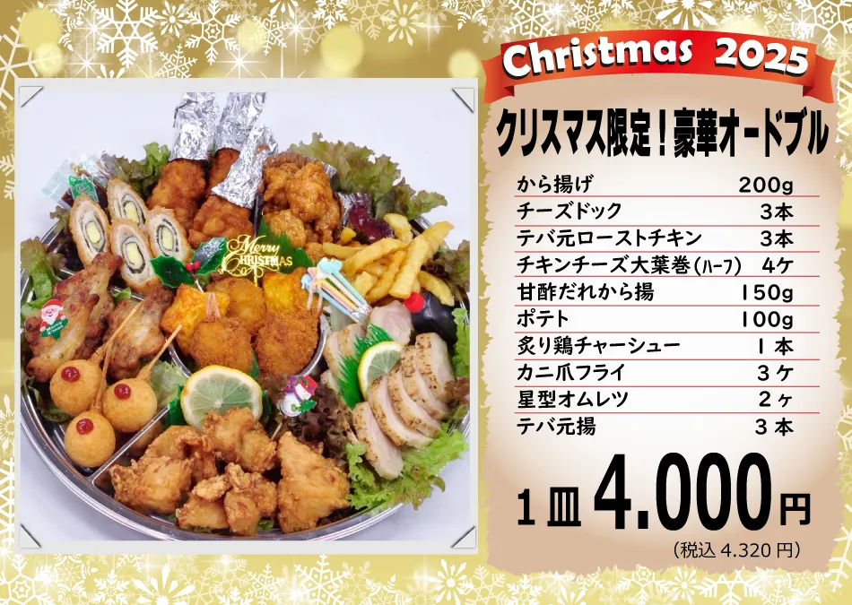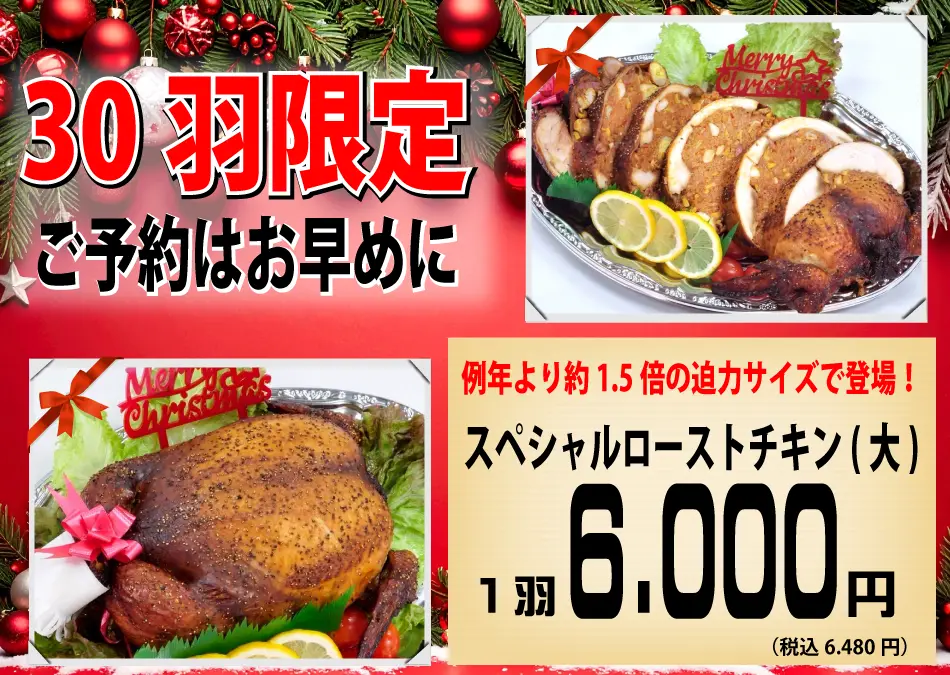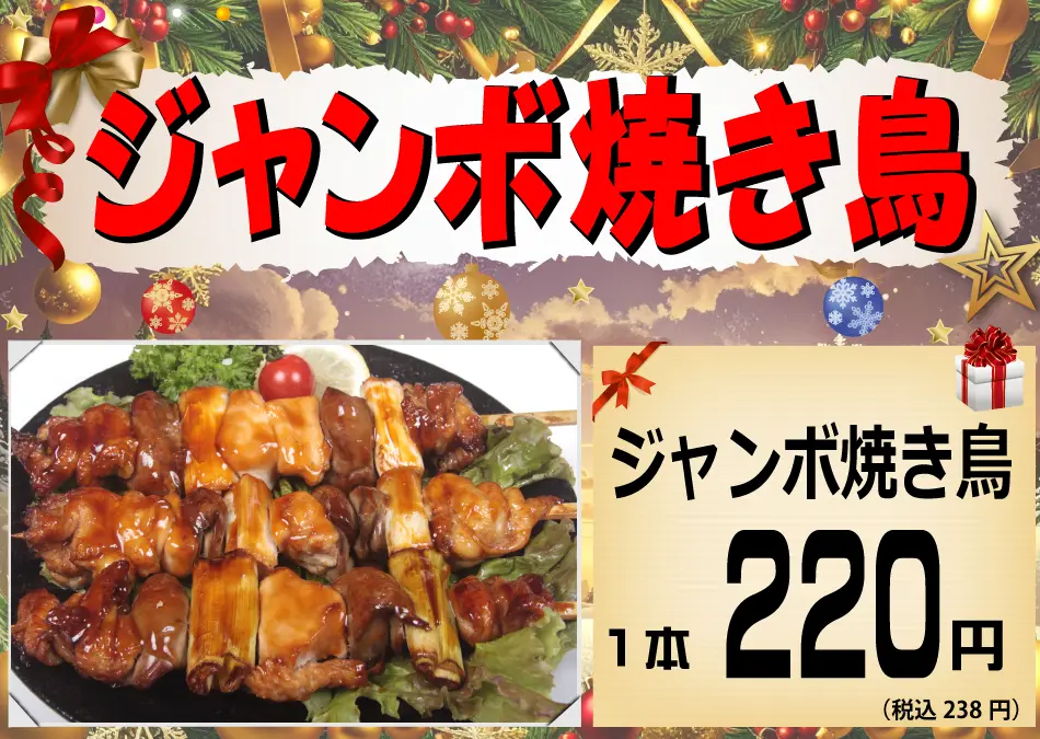 2025.11.05:クリスマス期間の焼き鳥の販売に関するお知らせ。 12月24日、25日はクリスマスの為、炭火焼き鳥の販売はお休みさせて頂きます。