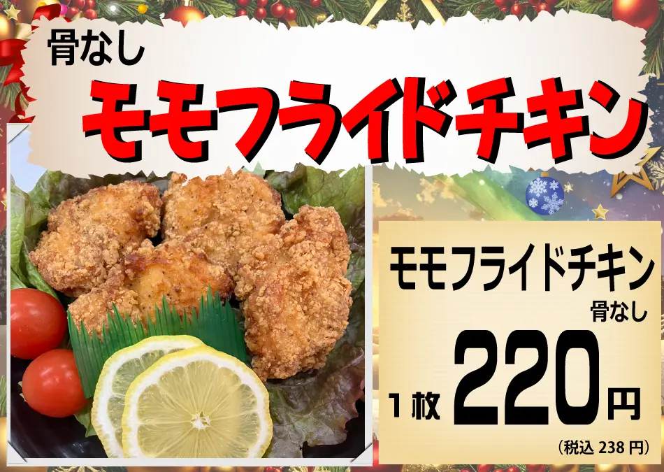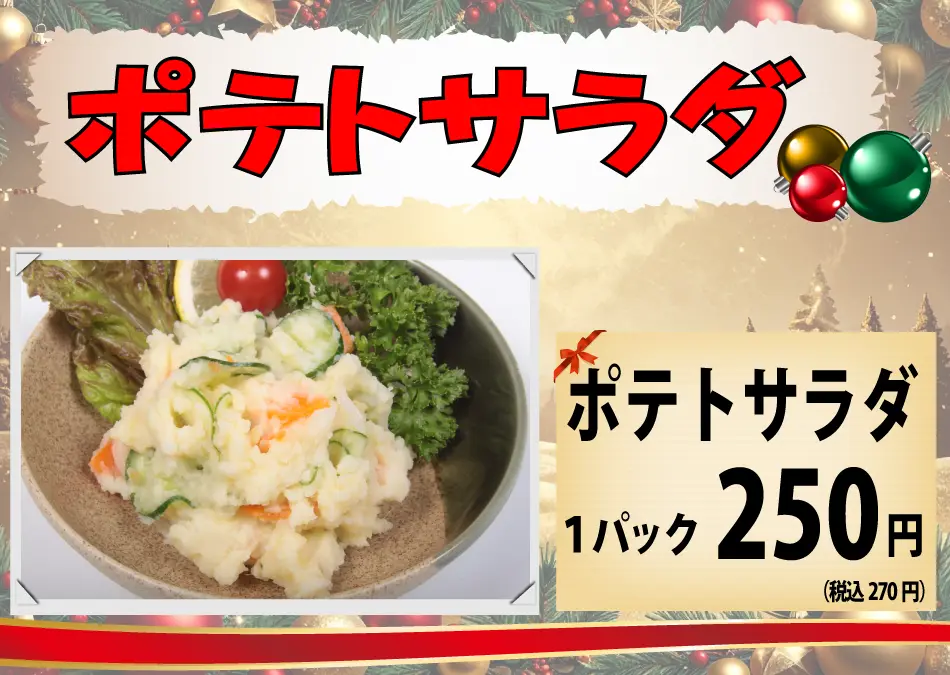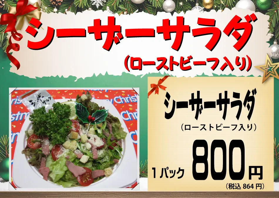 クリスマスの12月24日、25日はこのページ内の商品の予約販売のみとなります。店頭にもメニューを貼り出してあります。